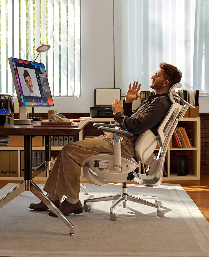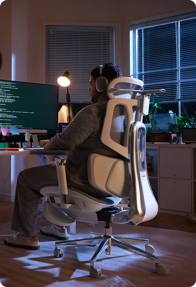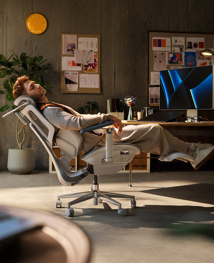 Engineered for creators. Our intelligent support intuitively anticipates fatigue, transforming long hours into sustained comfort and vitality— so you can stay focused and creative.