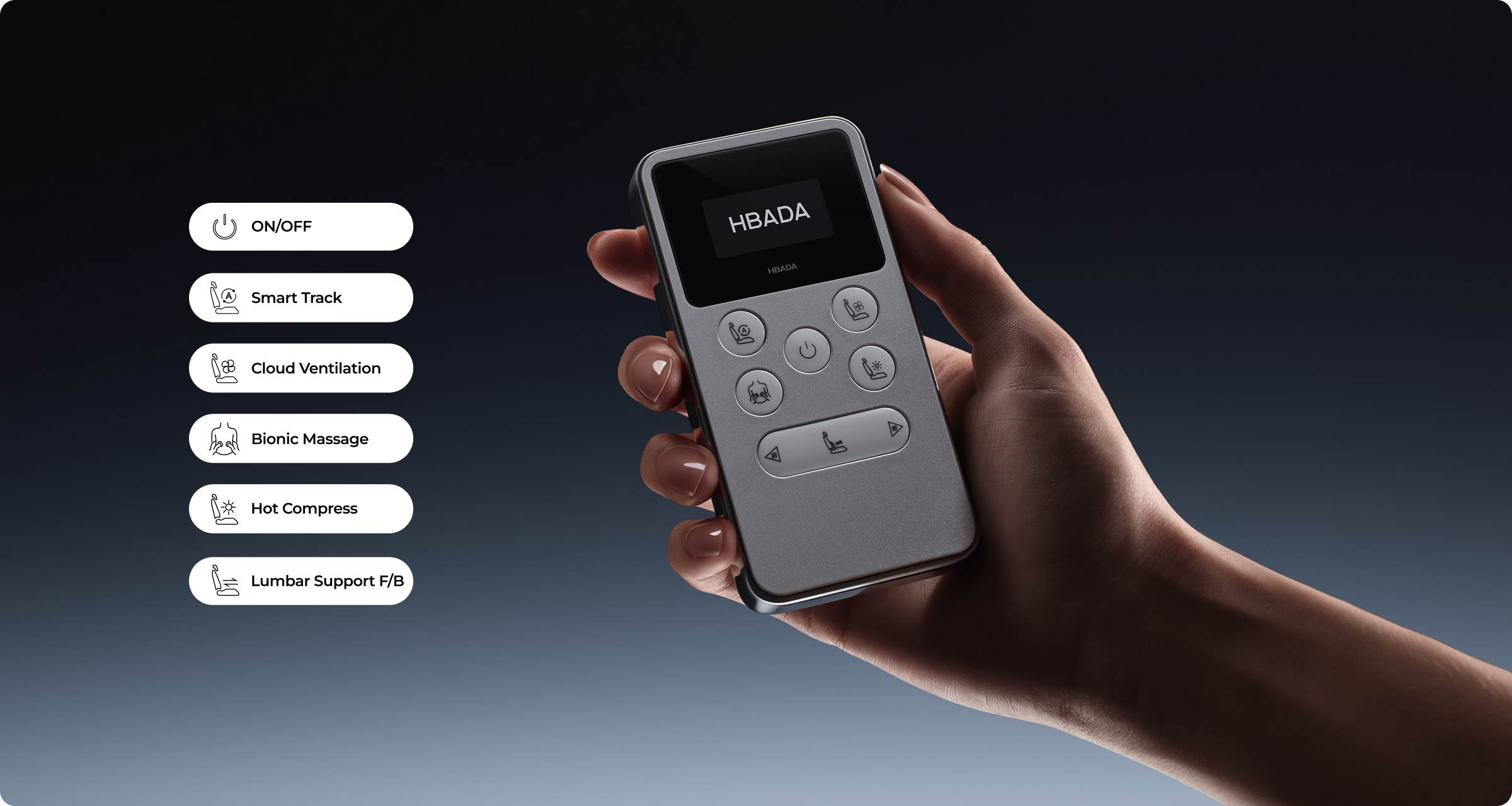 When a user sits down for the first time and activates Smart Mode, the system will intelligently learn and store their preferred mode and intensity settings. On subsequent uses, the automatic waist-following feature will activate automatically upon seating. Conversely, if the user manually disables Smart Mode, the automatic waist-following feature will not activate upon their next seating.