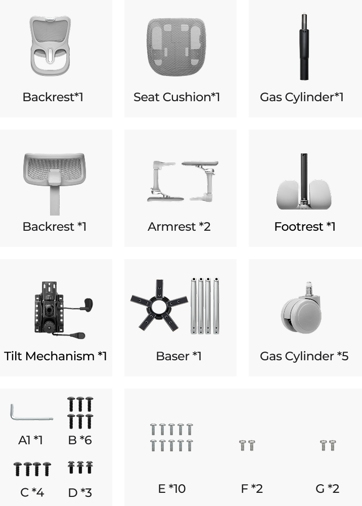 - Material PVC Caster; Steel Five-Star Base; PP+GF Back Shell
