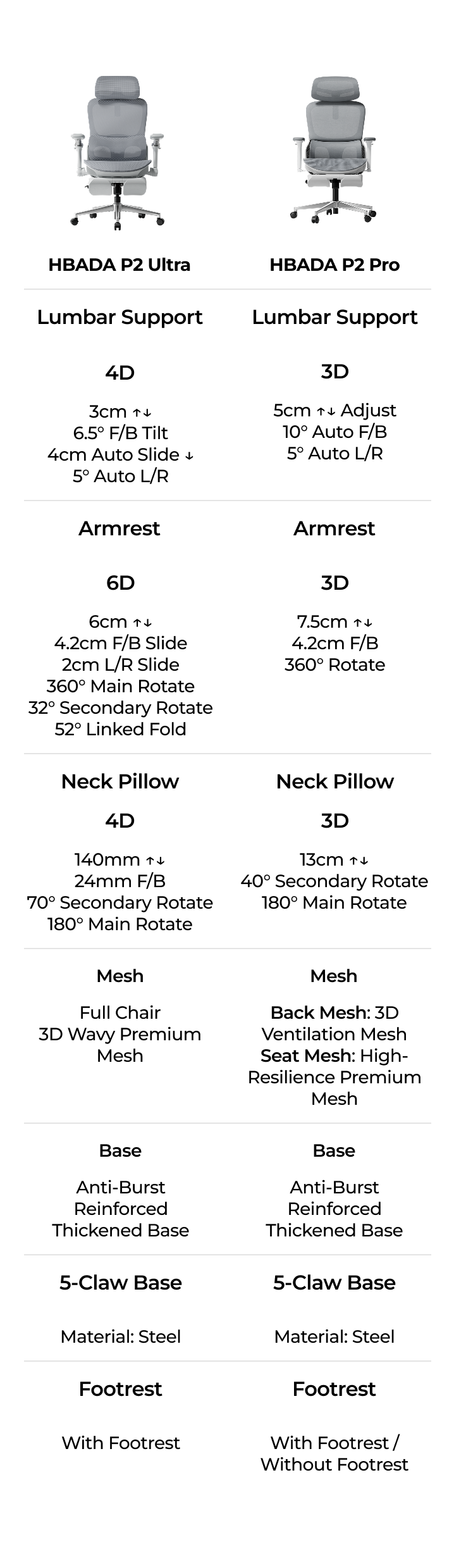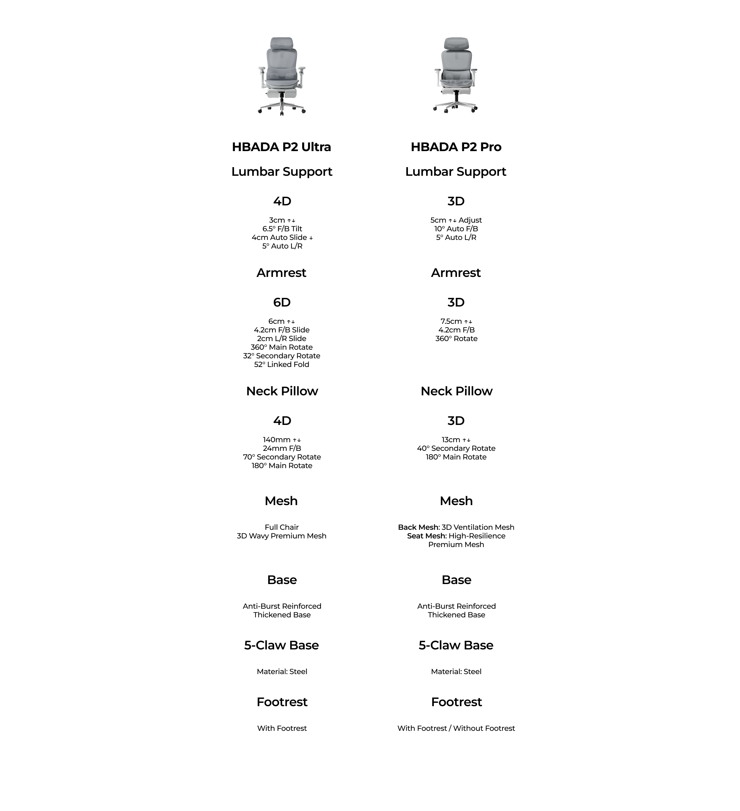 P2Ultrax headrest features a 4D adjustment system (5.5inch lift/0.9inch front-back slide/70° frame rotation/180° surface rotation), adapting to varied heights and postures. It conforms to the cervical spine’s natural curve, reducing muscle tension, and maintains stable support even during long hours of use.